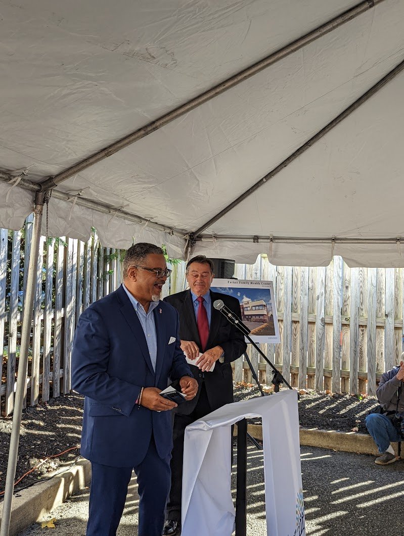 Special Guest Speakers included New Jersey’s First Lady Tammy Murphy, New Jersey State Senator Vin Gopal, Red Bank Mayor Pasquale Menna, and Reverend Terrence Porter from Red Bank Pilgrim Baptist Church. Parker patient Jose Ramirez spoke warmly of the clinic, stating “They provide me with the best service and they do it with heart…every single one of them.” Others on hand offering congratulations and support included Parker’s Capital Campaign Honorary Chair Dorothea Bongiovi, the Campaign’s Co-Chair Carol Stillwell, former State Senator Joe Kyrillos, Reverend Bolivar Flores, Vice-President of New Jersey Coalition of Latino Pastors and Chief of Staff for New Jersey Reentry Corporation, and former Red Bank Mayor Ed McKenna, Jr. Additionally, New Jersey State Senator Declan O’Scanlon, though unable to attend, honored the clinic with a congratulatory proclamation. County Commissioners, including Commissioner Director Tom Arnone, were unable to attend due to scheduling conflicts but sent along their good wishes for the project. In addition to receiving a $107,500 grant from Central Jersey Impact 100 in support of this initiative, Parker was also awarded $500,000 from Monmouth County, under the American Rescue Plan Act (ARPA) Covid-19 Community Recovery Grant Program, which monies are to be used in part for this expansion.