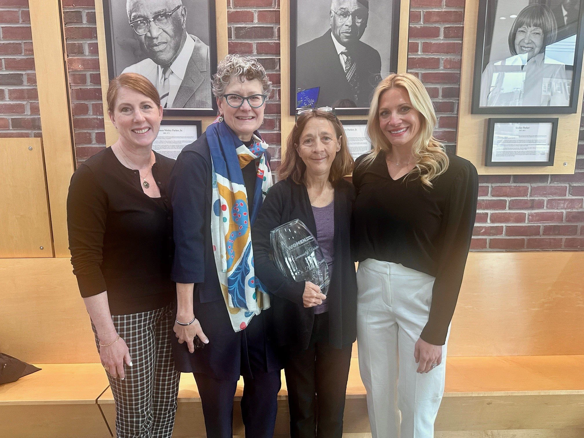 Samantha White (far left) and Natalie Carpenter (far right) present Dr. Debra Harmady (second from right) with the 2025 Junior League of Monmouth County’s 2025 Women Making a Difference Award. With them is Suzy Dyer, Parker Family Health Center Executive Director.